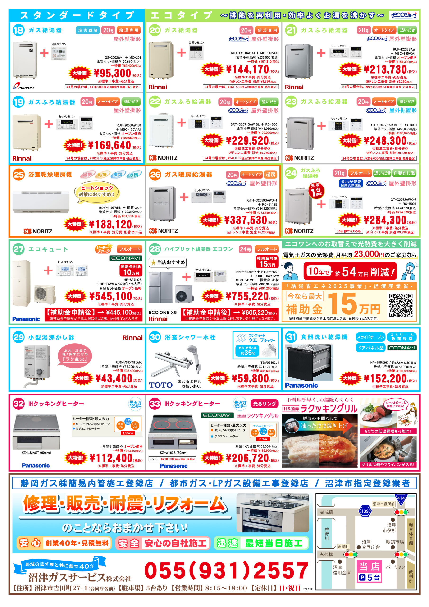 県営団地や沼津市営団地にお住いの皆様、ガス給湯器等の故障の