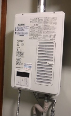 リンナイのガス給湯器へ新しくお取替えいたしました。