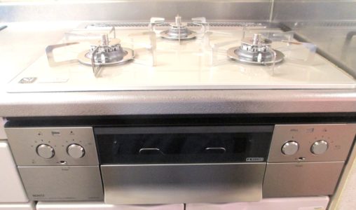 コンロを使用している途中で火が消えてしまうとのことで、ノーリツのビルトインコンロ「piatto(ピアット)」にお取替えいたしました。