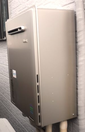 リンナイのガス給湯器へお取替えいたしました。1台でキッチンやシャワーなどの給湯ができる給湯専用タイプになります。