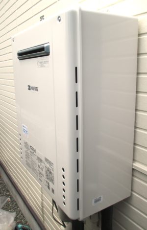 ノーリツのガスふろ給湯器をお取替えいたしました。こちらの製品は、1台で浴室・シャワー・洗面所・台所へ給湯+追いだきができるタイプになります。