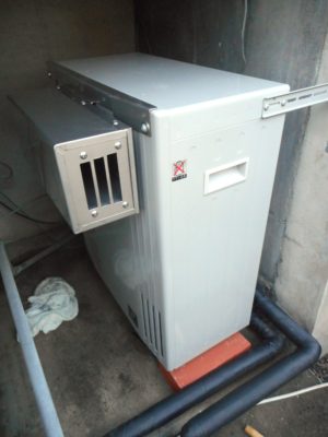 パーパスのガスふろ給湯器へと新しくお取替えいたしました。