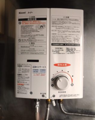 リンナイの先止め式小型湯沸かし器へとお取替えしました。