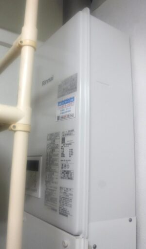 リンナイの屋外壁掛型のガスふろ給湯器へお取替えしました。