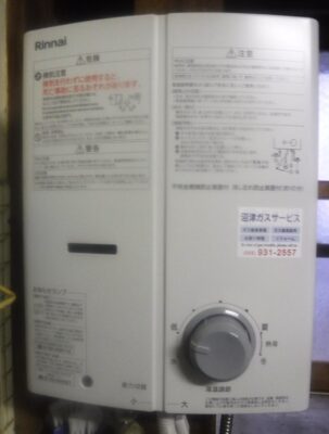 リンナイの小型湯沸かし器へお取替えしました。