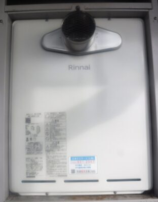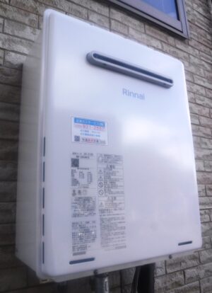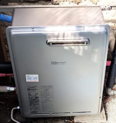 リンナイの屋外壁掛型のガスふろ給湯器へお取替えしました。