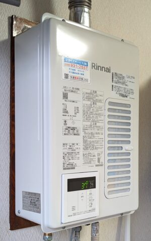リンナイの屋外壁掛型のガスふろ給湯器へお取替えしました。
