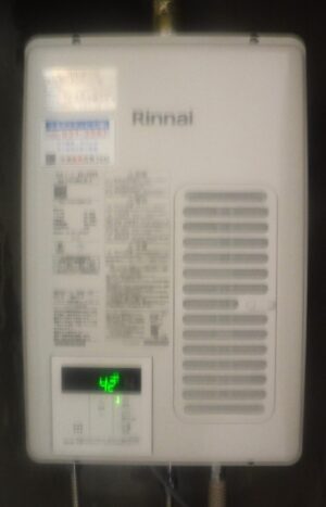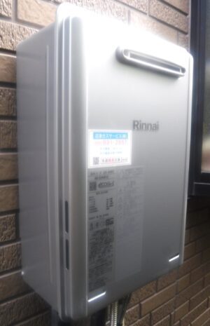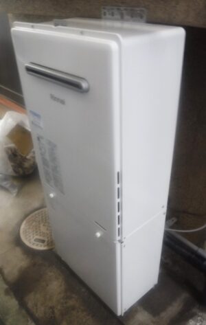 リンナイの屋外壁掛型のガスふろ給湯器へお取替えしました。