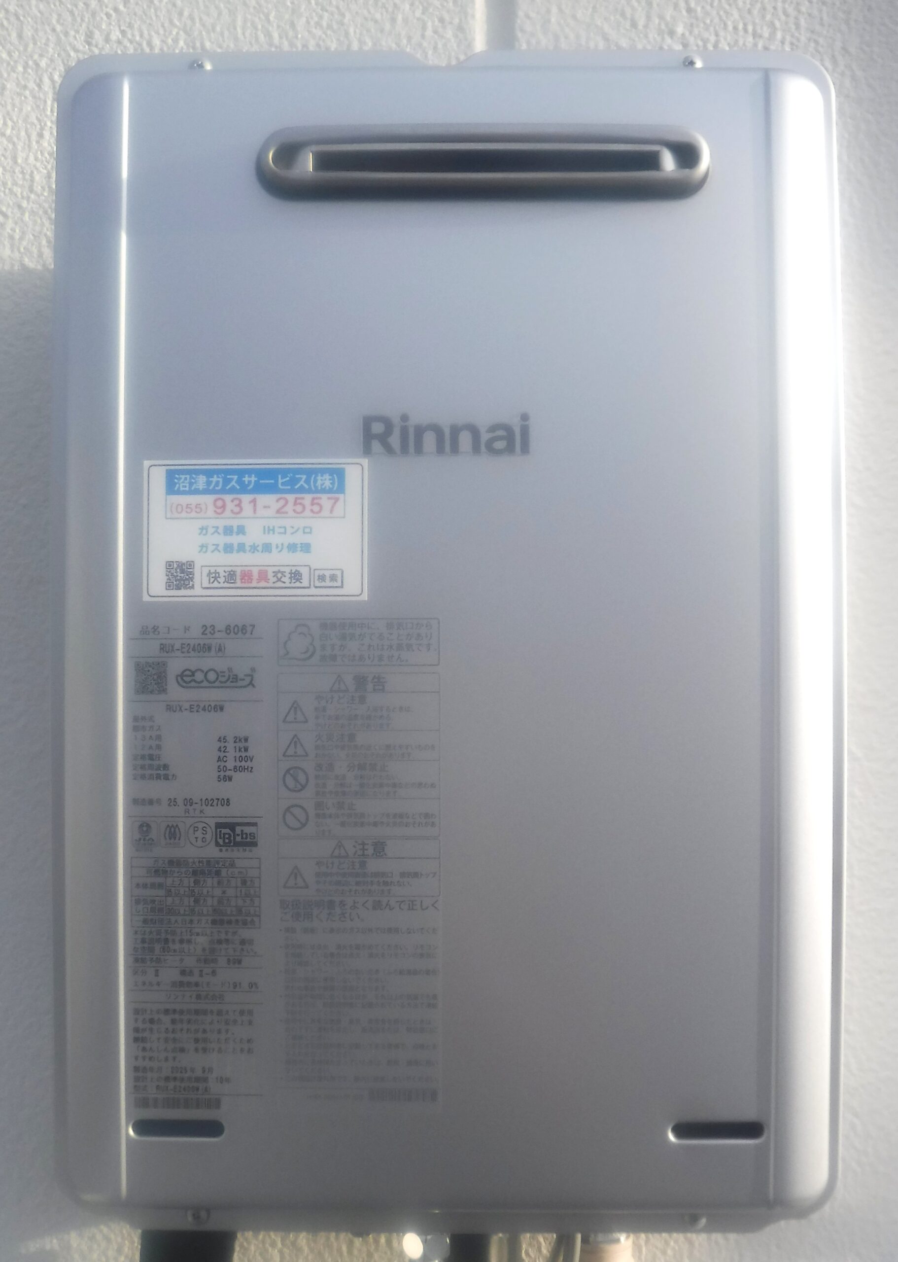 リンナイの24号サイズの給湯専用ガス給湯器へお取替えしました。