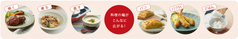 魚以外にもハンバーグなどの肉料理やお菓子などもグリルで調理できます。