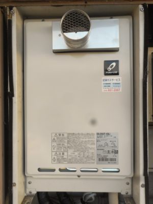 パーパスのガス給湯器へと新しくお取替えいたしました。
