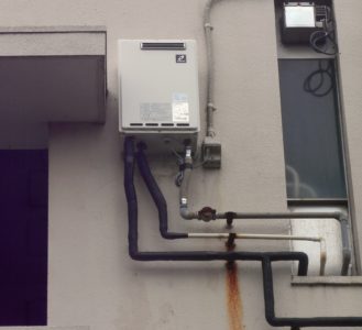 今回は、ビルの3階の屋外に給湯器をお付けしました。