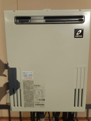 パーパスのガスふろ給湯器へと新しくお取替えいたしました。