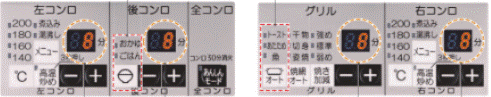 コンロ30分消火安心モードボタンひと押しで通常消し忘れ消化120分が30分で自動消火します。