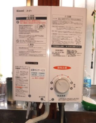 リンナイの小型湯沸かし器を新しくお取替えいたしました。